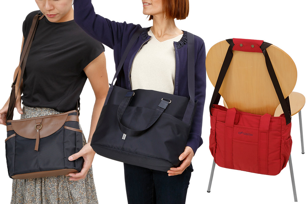雨で傘をさすとき、電車に乗るときなど、さっと前に抱えられるのが楽です。
